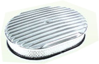 Full Fin Polished Alum 12" Oval Air Cleaner Set w/ Washable Element